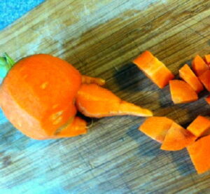 I took stock of the root cellar and what’s growing in the garden and made a delightful lunch!  A few days ago we pulled some carrots out of the garden and harvested all our potatoes.  That’s the best “job” – potato harvesting.  If you haven’t had a chance to do it – you have to try it sometime.  The summer starts to wind down, the potato plants start dying, the weeds start growing larger than the plants and eventually the weeds completely eclipse them.  And then you come along and pull some weeds and do a little digging and the earth you carefully tended all summer gives you lots of lovely potatoes!  It’s especially special for us since we battled some serious potato bugs in our community garden plot this year. But our diligence has paid off and the basement has a Fall and Winter’s supply of taters!