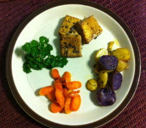 Lemon Myrtle Tofu with Roasted Potatoes and Honey Glazed Carrots