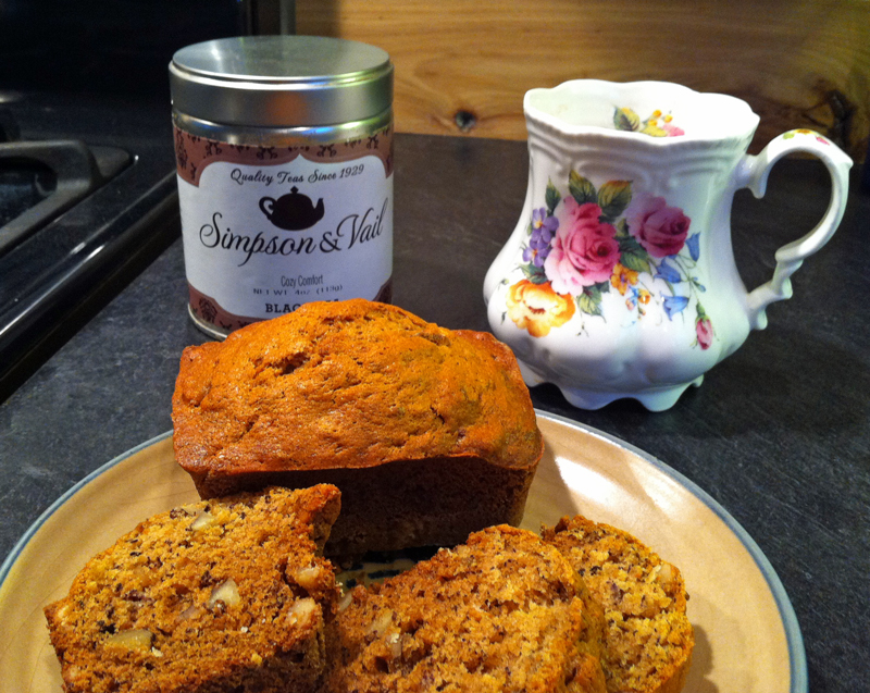 A delicious tea bread made with tea! Nothing says cozy more than this tea and the aroma of baking sweet breads. This bread is lovely and even lovelier when enjoyed with a cup of Simpson & Vail’s Cozy Comfort tea 🙂